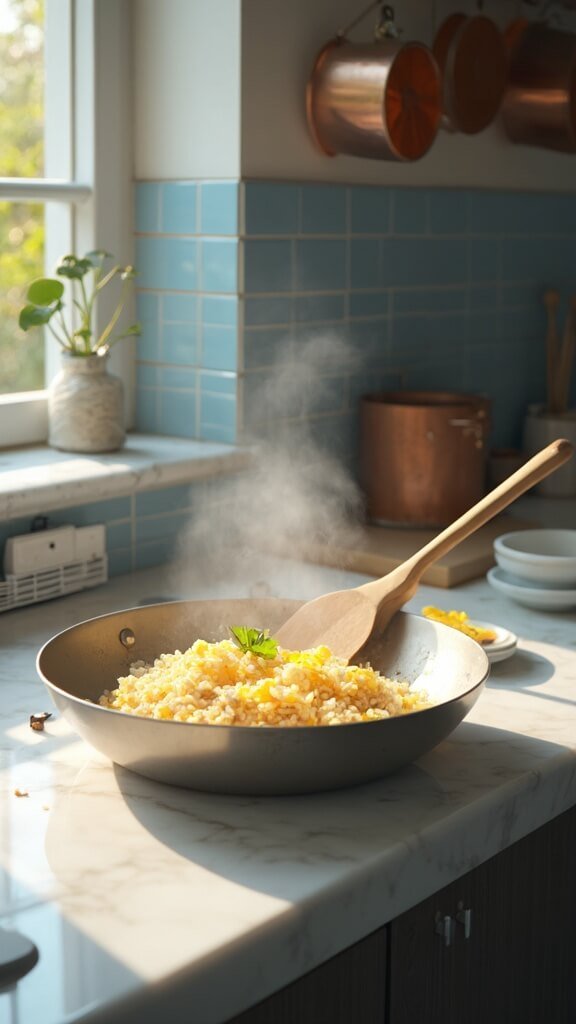 That’s the sound of each grain getting perfectly coated, developing that slightly crispy exterior that makes great fried rice so addictive.