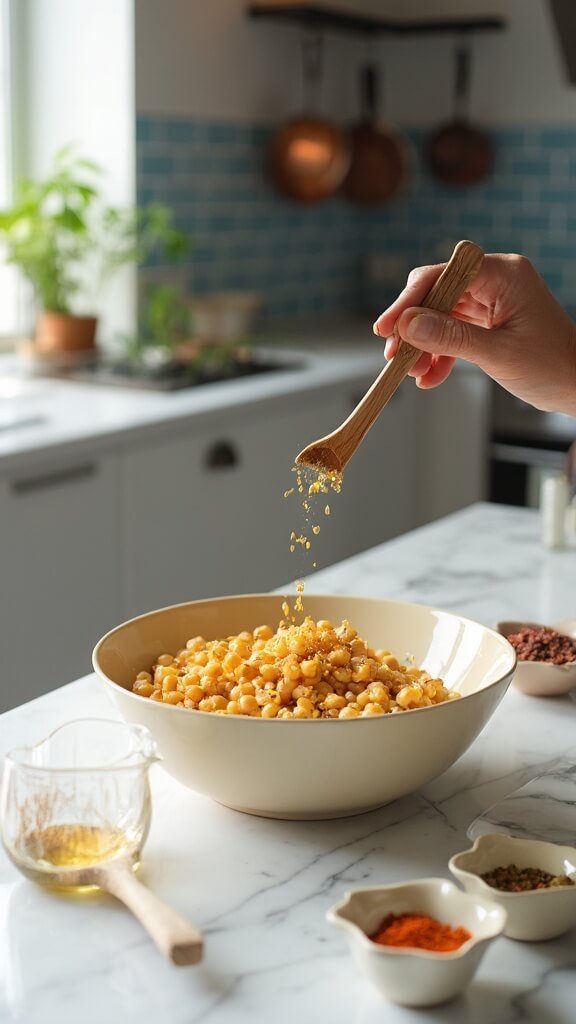 That’s exactly how I discovered this game-changing roasted chickpeas recipe that costs less than a pound per portion and delivers more protein than most expensive snacks.