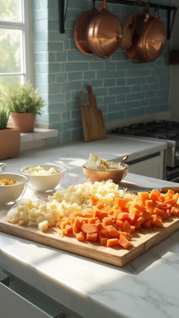 The combination of sweet and earthy root vegetables creates natural depth. Browning the aromatics builds a flavor foundation that makes this taste like it simmered for hours. The bean liquid acts as a natural thickener, eliminating the need for expensive cream or complicated roux.