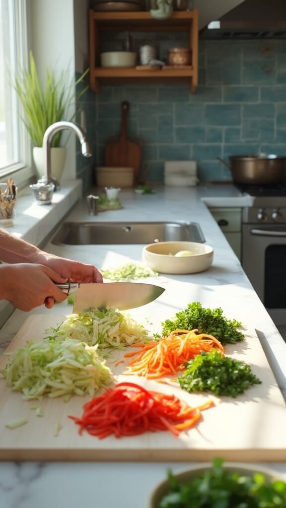 - Add delicate ingredients like nuts and herbs last to prevent wilting