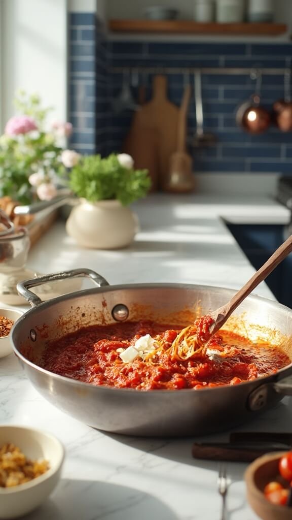 • Reserve pasta water before draining – the starch helps bind the sauce