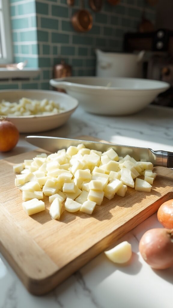 - Wash and peel your parsnips and turnips, then cut into uniform ¾-inch cubes for even cooking.