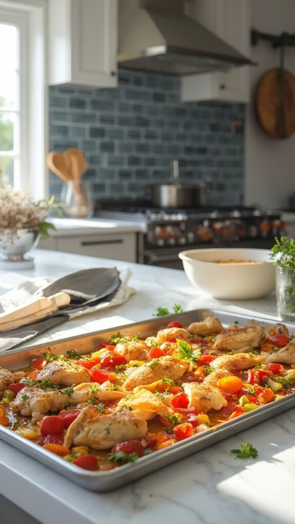 Quick Sheet Pan Chicken & Rice Protein Bowl