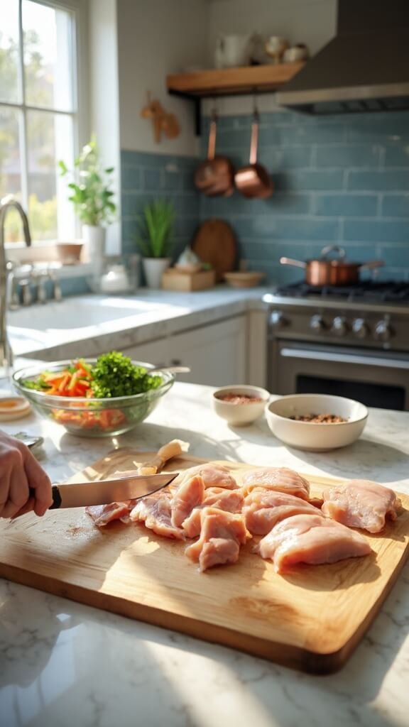 2. Cut chicken into uniform 1-inch pieces for even cooking.