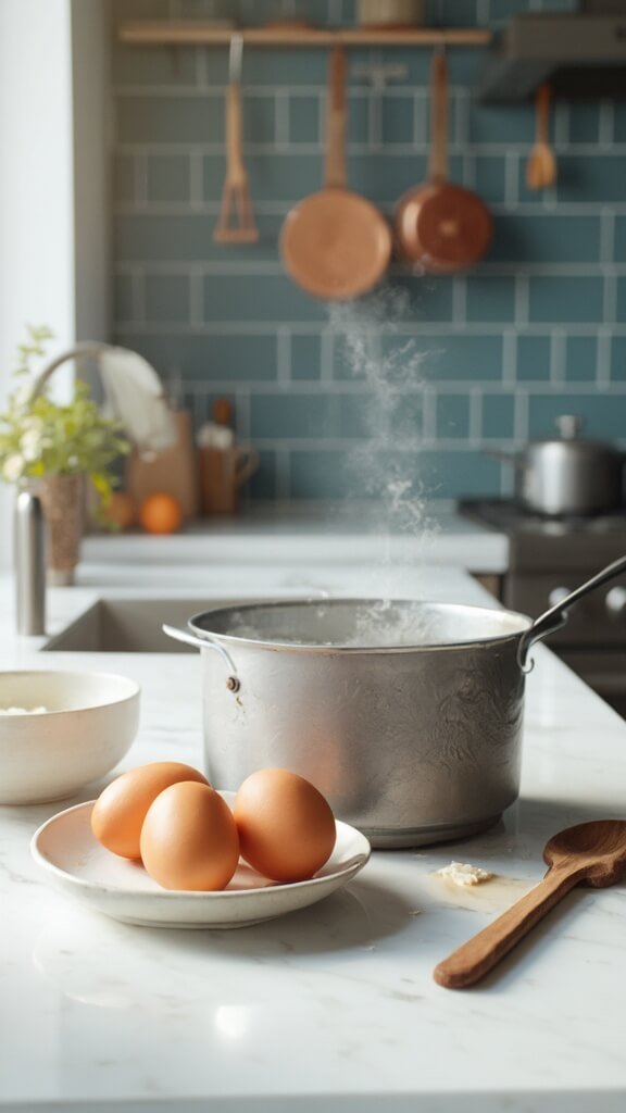 • Ice bath is non-negotiable – skip it and you’ll struggle to peel eggs