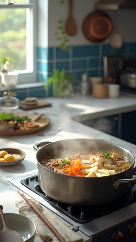 13. Taste broth and adjust seasoning – add more soy sauce for saltiness or miso for umami depth.